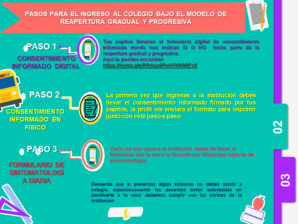 Nuestra institución esta comprometida en brindar a todos sus niños y niñas una educación de calidad, por lo tanto se adapta a las condiciones actuales , creando e implementando protocolos responsables y seguros.